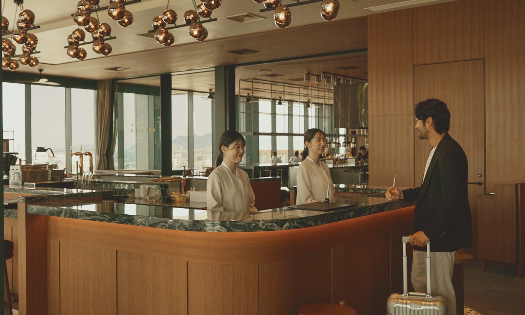 3つ目のホテルは、福岡以外から文化の担い手と呼べるような方々を呼び込める「地元と旅人が交わるまちに根付いた場」を作っていきたいと考えています。チェックインフロアではレストランを営業。チェックインをする際に、隣を見ると地元の方や旅人が食事をしながらにぎやかに過ごす姿が見えます。客室は中庭と外部テラスに開き、まちの気配を取り込む設え。滞在者がローカルの活気を体感し、外を見れば博多湾の景色で“福岡らしさ”を実感できる仕掛けです。