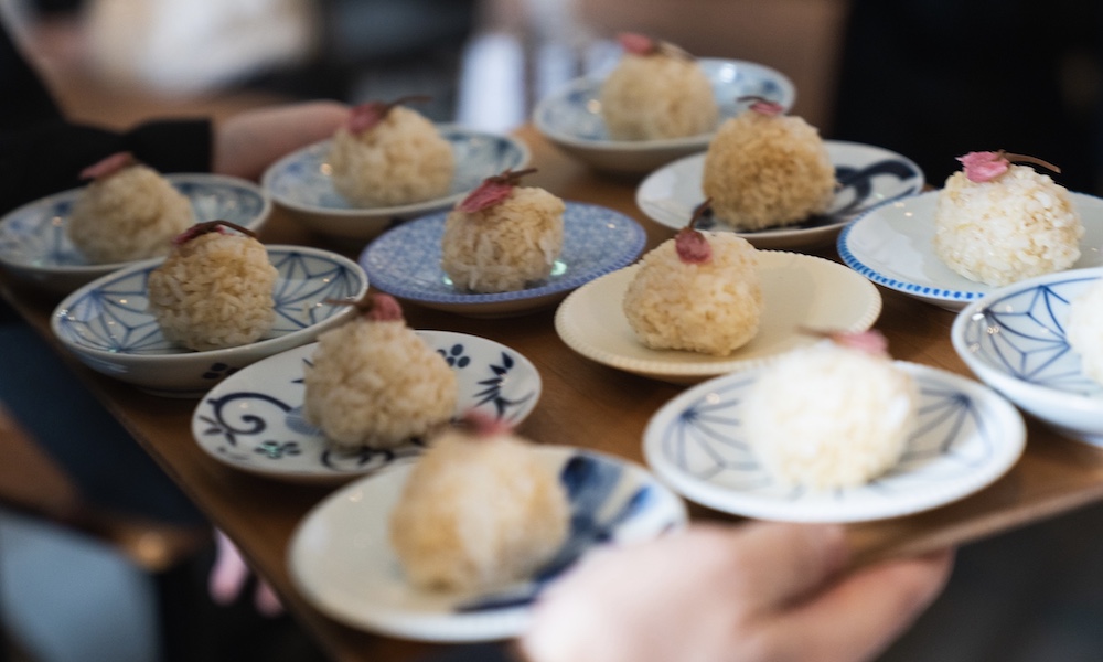 本編が始まる前の待ち時間、参加者の手元には嬉しいサプライズが配られました。会場の名物・佐賀県産米を使った土鍋ご飯の「おにぎり」です。まずはお腹を落ち着かせて、いよいよ本編がスタートします。