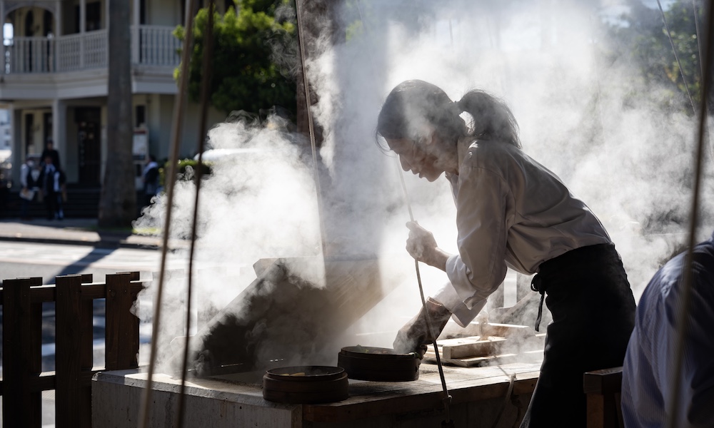 「小浜温泉」の源泉温度は105℃と日本一。その蒸気は食材をおいしく蒸し上げます。そして温泉水を精製した塩がつくられ、温泉水そのものを“だし”のように使った料理も存在するのです。