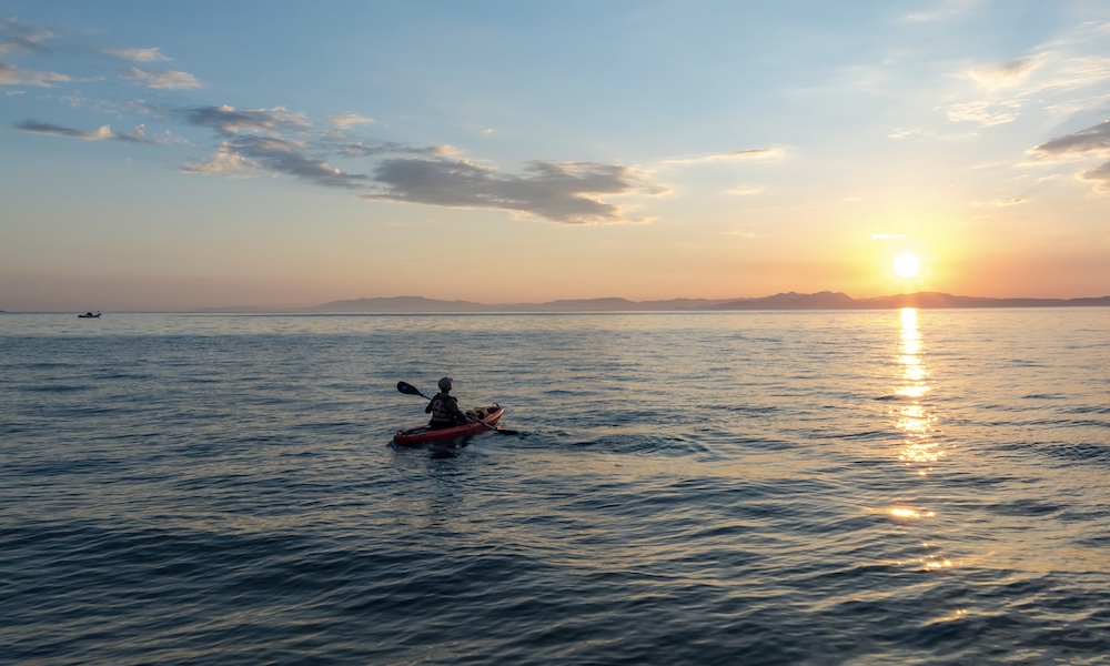 2025年、その夕陽を海の上から眺める「マジックアワーのシーカヤックツアー」が新しいアクティビティとして登場。黄金色の海と空が溶け合うなか、火山活動が作り出した断崖絶壁や洞窟をめぐるツアーは、神秘的な水上体験! ガイド付きなのでシーカヤック初体験の人も安心です。