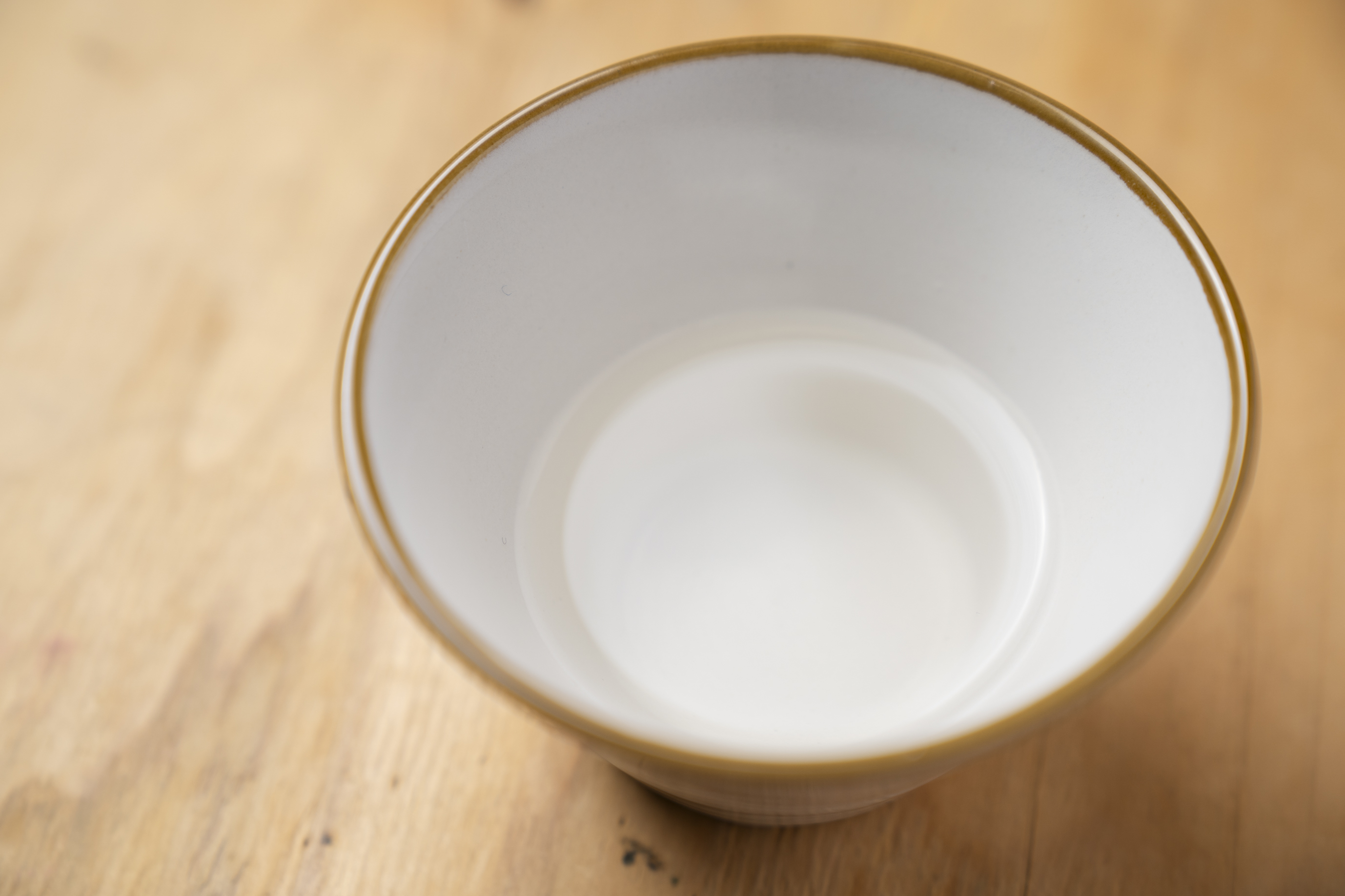 「始まりのひとくち」と題したトップバッターは「小浜温泉出汁」。温泉水をなにより最初に飲んでほしくてご用意しました。この温泉水こそ、今回の料理のおいしさの源のひとつです。海が近いので0.8%の塩分があり、そのままでもいい塩加減。じんわり身体にしみわたります。