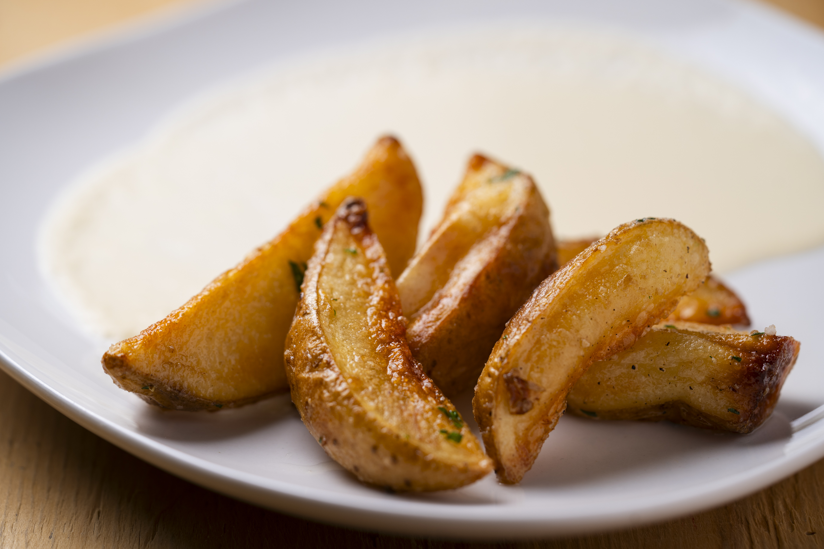 素材のじゃがいもは雲仙の若手農家デジマプロジェクトが育てた、まぼろしのじゃがいも「デジマ」。それを一度蒸して、さらにオーブンで焼いて旨味を凝縮し、食べる直前に揚げるという、手間暇かけたまさにスペシャルな一品です。