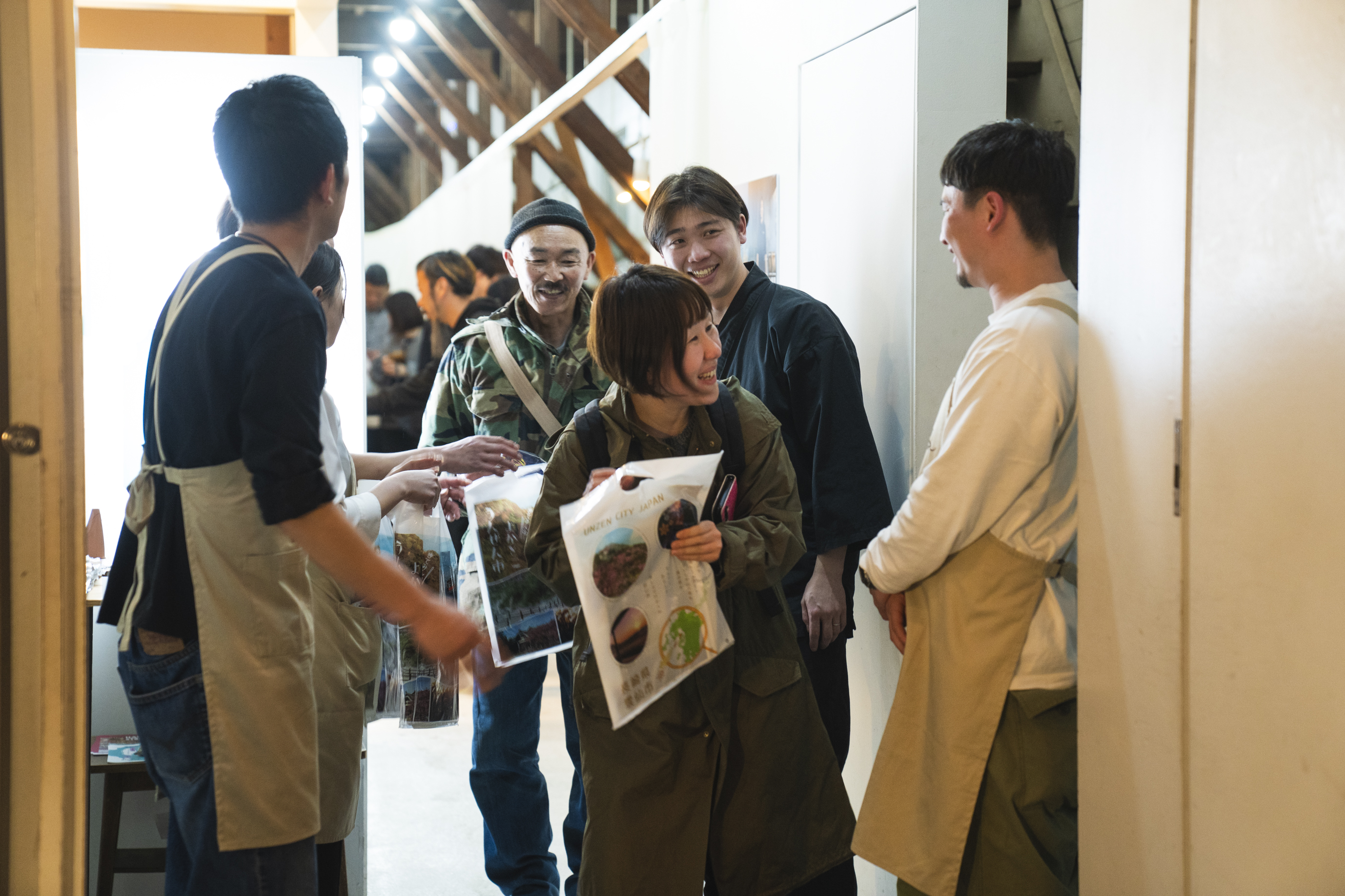 2日間にわたる「雲仙のおすそわけ」開催に向けて、雲仙から泊りがけでやってきたメンバーは総勢8名。飲食店のオーナーから農家さんまで、暇を見つけては集い、雲仙の食や未来について語り合い、時にはお酒を飲んではしゃいでいる、仕事も遊びも信頼し合える関係性の仲間たちです。※詳しくはキャプションでご紹介します。
